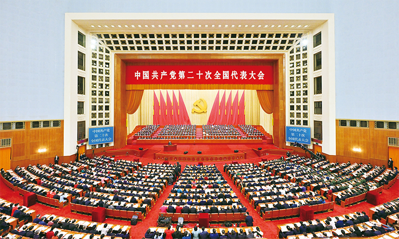 党的二十大提出开辟马克思主义中国化时代化新境界的重大任务,强调这是当代中国人的庄严历史责任。图为2022年10月16日,中国第二十次全国代表大会在北京人民大会堂开幕。 新华社记者 岳月伟/摄