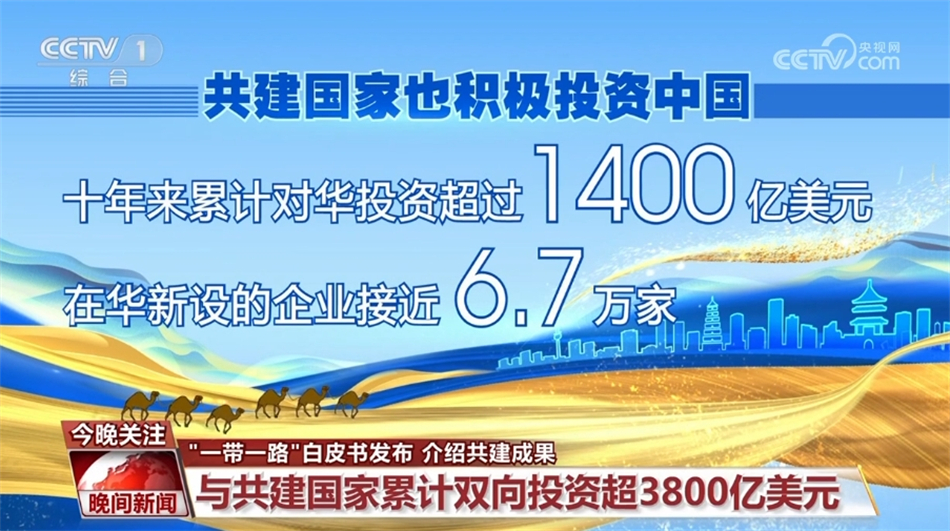 在投资领域,2013年到2022年,中国与“一带一路”共建国家的累计双向投资超过3800亿美元,其中对共建国家的直接投资超过2400亿美元。同时,共建国家也积极投资中国,十年来累计对华投资超过1400亿美元,在华新设的企业接近6.7万家。