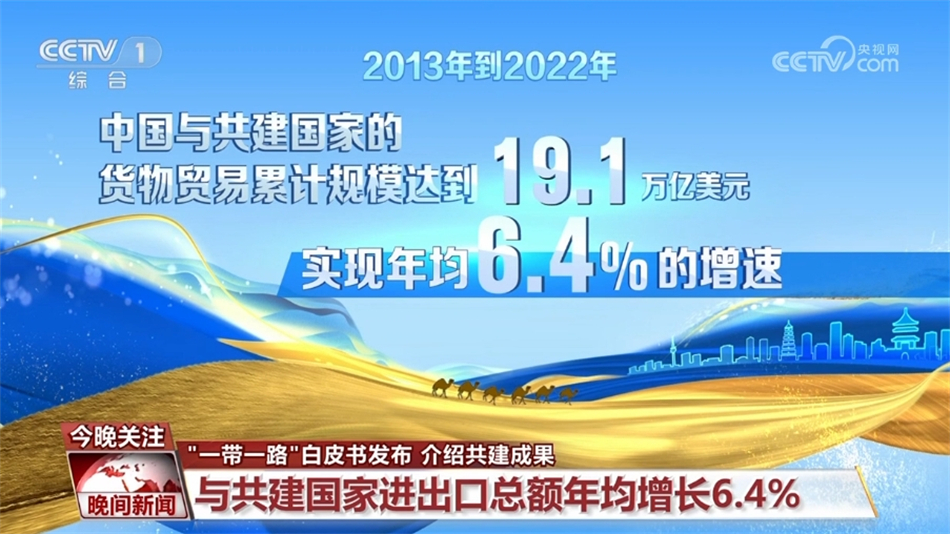 19.1万亿美元,这是2013年到2022年,中国与共建“一带一路”国家进出口累计总额,年均增长6.4%,这个增速既高于同期我国外贸整体增速,也高于同期全球贸易增速。
