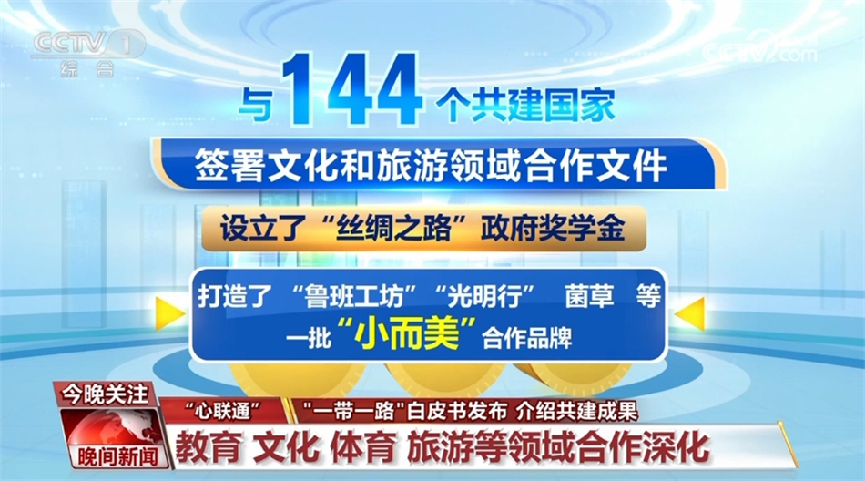 在“心联通”方面。教育、文化、体育、旅游、考古等领域合作不断深化,已与45个共建国家和地区签署高等教育学历学位互认协议,与144个共建国家签署文化和旅游领域合作文件,设立了“丝绸之路”政府奖学金,打造了“鲁班工坊”“光明行”“菌草”等一批“小而美”合作品牌。