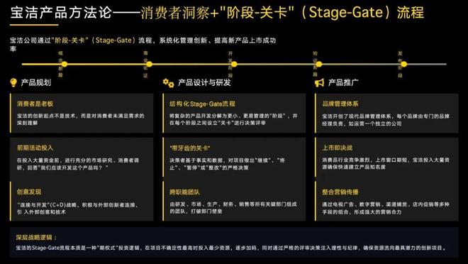 宝洁很早就提出了“消费者就是老板”的意识。在产品规划阶段,宝洁会进行大量的市场调研,定性和定量相结合。
